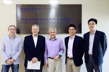 5月9日下午,约翰霍普金斯大学医学院国际部副部长Charles Wiener,常务董事SanfordWu以及高级助理Chengda Zhang (张成达)一行来访参观中国科大脑资源库暨神经退行性疾病研究中心(NDRC),我校生命学院院长薛天教授陪同参观。